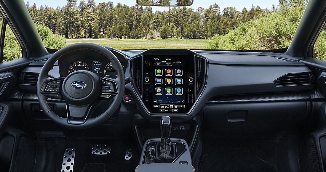 El Crosstrek del 2025 viene con una pantalla táctil de infoentretenimiento de 7 pulgadas (o una de 11.6 pulgadas en versiones superiores por un poco más de dinero) con Apple CarPlay y Android Auto.